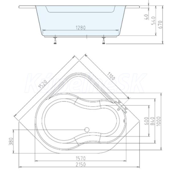 Polysan EDERA rohová vaňa 152x152x54cm, biela