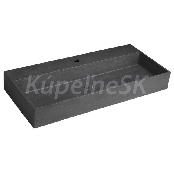 Sapho QUADRADO betónové umývadlo vrátane výpusti, 96x44 cm, čierny granit