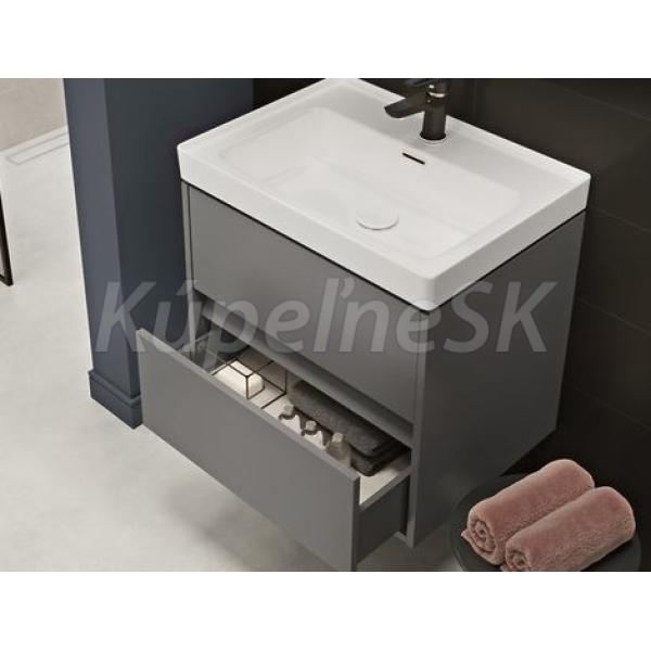 Závesná umývadlová skrinka v šedom matnom prevedení. Korpus a predná časť skrinky