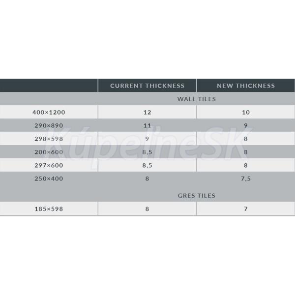 Vo výrobnom procese nastala zmena hrúbky z 8 mm na 7,5 mm. Zo skladových zásob je