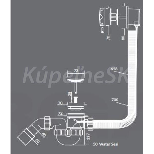 Automatický vaňový sifón s prepadom s prepadovou rúrou predĺženou na 70 cm.