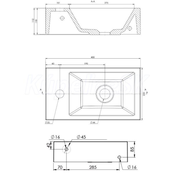 Sapho AMAROK liaty mramor umývadlo 40x22cm, čierna mat, batéria vľavo