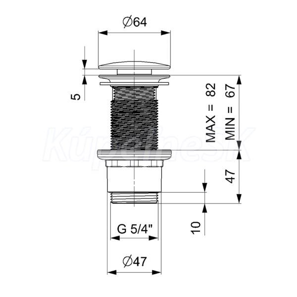 Sapho Umyvadlová výpust 5/4", neuzatvárateľná, veľká zátka, 10-80mm, ABS/chróm