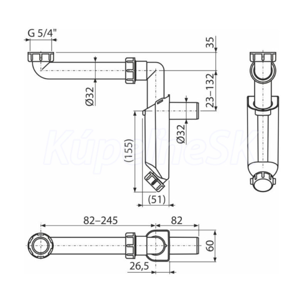 ALCA Sifón umývadlový nábytkový DN32 s prevlečnou maticou 5/4"