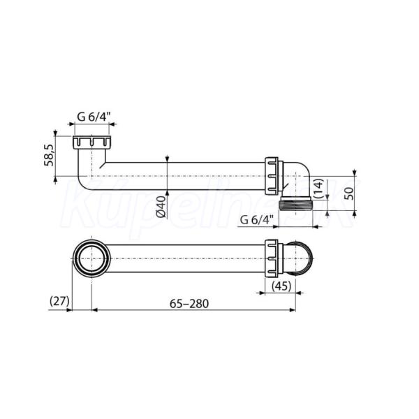 ALCA Priestorovo úsporné dopojenie G 6/4" × G 6/4" pre drezové sifóny