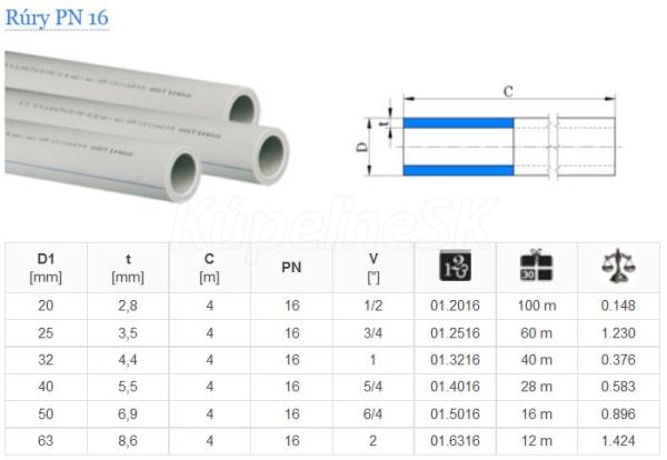 PPR 32 Rúra 4,4mm, PN16 01.3216