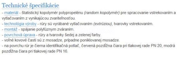 - technológia výroby - rúry sú vyrábané vytlačovaním (extrúziou), tvarovky vstrekovaním.