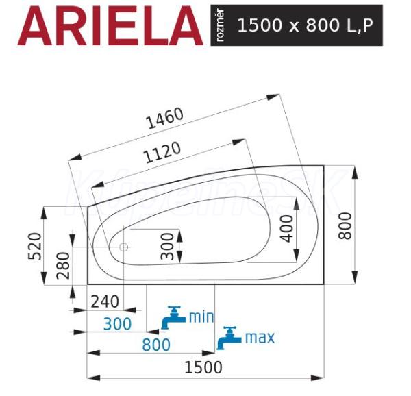 Santech ARIELA asymetrická masážna vaňa 150x80L Fitnes 300 +aut.dohr.vody +chromot.ZADARMO