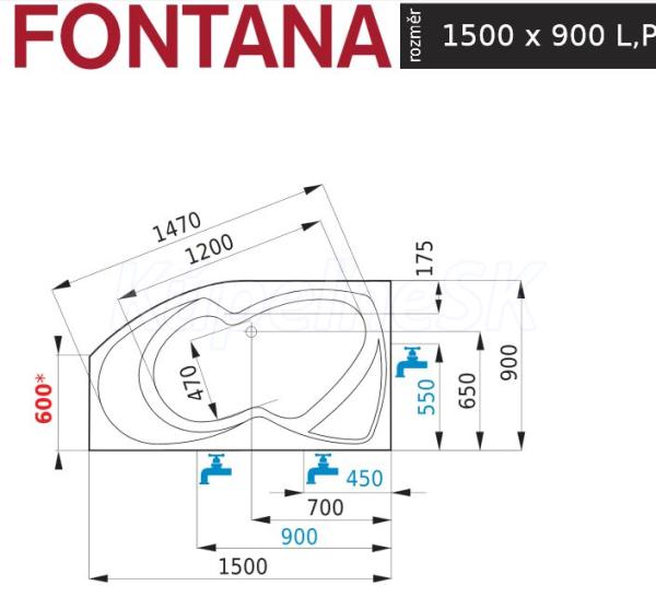 Santech FONTANA asymetrická masážna vaňa 150x90L Fitnes300 +aut.dohr.vody +chromot.ZADARMO