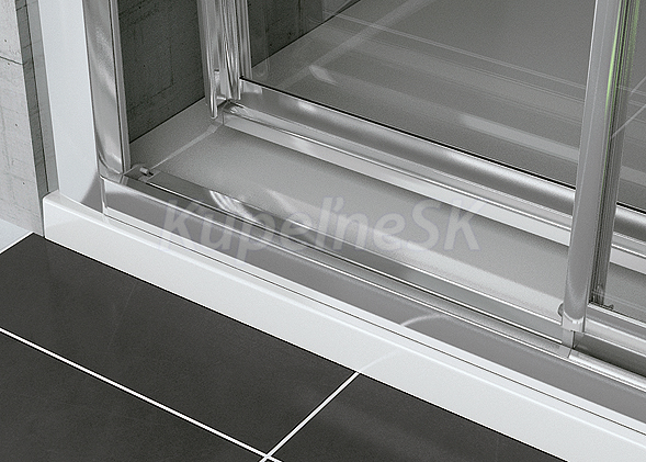 Ronal Top-Line TOE3D Sprchové dvere určené na kombináciu s druhými dverami TOE3G o ľubovoľnom rozmere, čím máte možnosť vytvoriť atypický rohový kút s rohovým vstupom. Trojdielne posuvné dvere, 3mm kalené bezpečnostné sklo so vzorom Durlux. Plastové dieliky sú v chrómovanom prevedení. Magnetické tesnenie dverí zaručujúce tesnosť dverí.