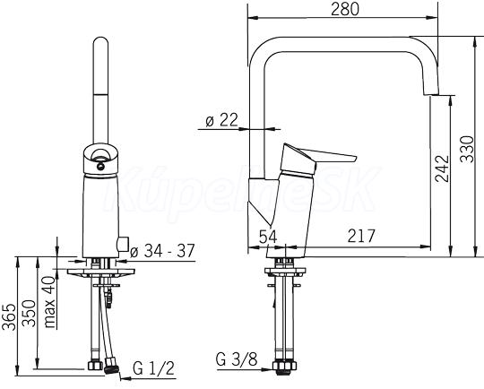s pákou "easy-grip", s vysokým otočným ramenom a prevzdušňovačom (perlátorom) a Smart ventilom na umývačku riadu. Uhol pohybu výtokového ramena je z výroby nastavený na 120° (tento rozsah je možné zmeniť na 0° alebo 60°). Ventil na umývačku riadu sa automaticky uzavrie po 3 alebo po 12 hodinnách (jedno stlačenie otvorí ventil na 3 hodiny, dlhé stlačenie po dobu 5 sekúnd otvorí ventil na 12 hodín). Ventil je napájaný monočlánkom 6 V.