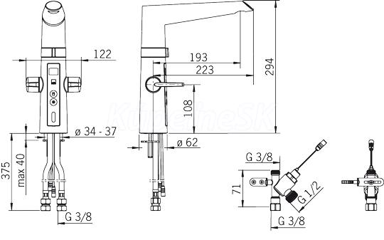 Kuchynská batéria s páčkami "easy-grip" pre teplú a studenú vodu, bezdotykovou funkciou, ukazovateľom nastavenej teploty vody s varovaním pri nastavení horúcej vody, vysokým otočným ramenom, prevzdušňovačom (perlátorom) a Smart ventilom na umývačku riadu. Prietok teplej a studenej vody sa ovláda nezávisle, samostatnými páčkami. Uhol pohybu výtokového ramena je z výroby nastavený na 120° (tento rozsah je možné zmeniť na 0° alebo 60°). Bezdotyková funkcia sa spúšťa priložením rúk do snímacieho priestoru pred senzor. Teplotu vody pre bezdotykovú funkciu je možné nastaviť otáčaním krúžku medzi výtokovým ramenom a batériou. Bezdotykovú funkciu je možné jednoducho vypínať a zapínať. Ventil na umývačku riadu sa automaticky uzavrie po 3 alebo po 12 hodinnách (jedno stlačenie otvorí ventil na 3 hodiny, dlhé stlačenie po dobu 5 sekúnd otvorí ventil na 12 hodín). Systém je napájaný priamo zo siete cez zásuvkový transformátor, 230/5 V. Batéria je dodávaná s filtrami nečistôt.
