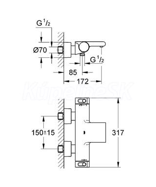 GROHE Grohtherm 2000 Termostatická vaňová batéria 1/2" DN15, vaňa / sprcha,chróm 3