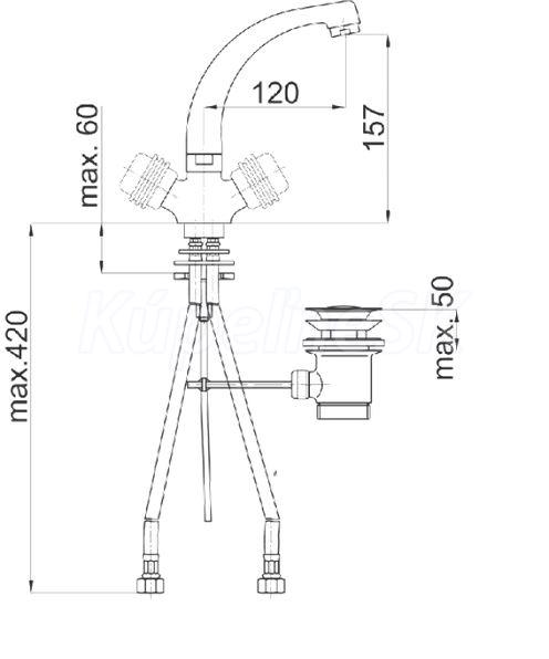 HERZ Umývadlová zmiešavacia batéria VAL, liaty výtok, s hornou časťou sifónu 5