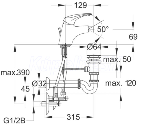 HERZ PRESTIGE Bidetová zmiešavacia batéria s hornou časťou sifónu 5/4", sifónom a rohovými