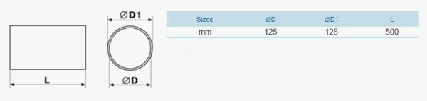 Potrubie 2010-D125/1000, pevné, kruhové, plastové, rozmer: 125x128x1000