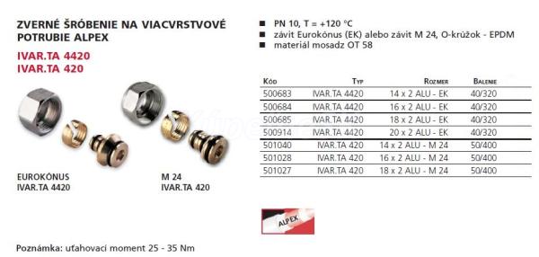 Ivar TA 420 Zvarné šróbenia-na viacvrstvové potrubia ALPEX-16x2 ALU-M 24