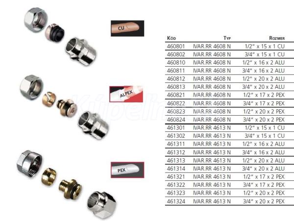 Ivar RR 4608 N SET Sada zverného šróbenia so vsuvkou- 3/4"Mx16x2 ALU niklovaná mosaz CW617N, O-kroužek EPDM 1/50 Ivar RR 4608 N SET Sada zverného šróbenia so vsuvkou- 3/4"Mx16x2 ALU niklovaná mosaz CW617N, O-kroužek EPDM 1/50