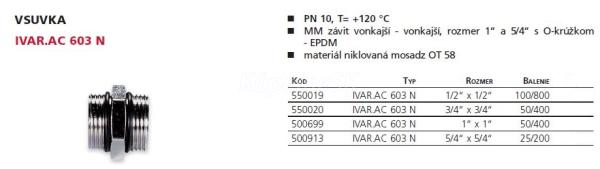 IVAR.AC 603 N Vsuvka s vonkajším závitom, 1/2"x1/2"