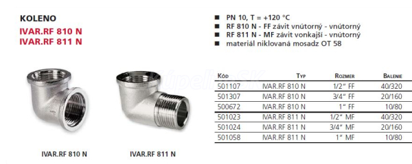 Ivar RF 810 N Koleno-1/2"Fx1/2"F, nikel niklovaná mosaz CW617N 40/320 Ivar RF 810 N Koleno-1/2"Fx1/2"F, nikel niklovaná mosaz CW617N 40/320