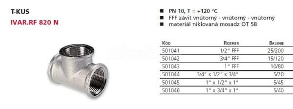 IVAR.RF 820 N T-kus, FFF závit vnútorný-vnútorný-vnútorný, 1"FFF