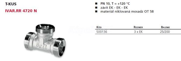 IVAR.RR 4720 N T-kus, závit - 3xEK