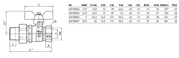 FIV.8373 R guľový uzáver voda PERFECTA-so šróbením-5/4"FM motýľ