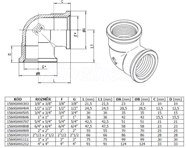 Ivar 1560 G Koleno FF 90-2"x2" mosaz CW617N 6 Ivar 1560 G Koleno FF 90-2"x2" mosaz CW617N 6