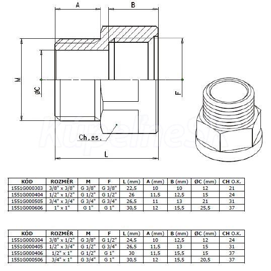 Ivar 1551 G Redukovaný prechod vonkajší-vnútorný závit-1/2"x3/4"