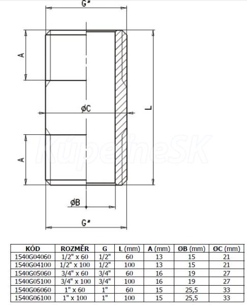 Ivar 1540 G Predĺženie-60x1" mosaz CW617N 10 Ivar 1540 G Predĺženie-60x1" mosaz CW617N 10