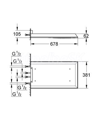 381 mm (šírka) x 60 mm (výška) x 677 mm (hĺbka)