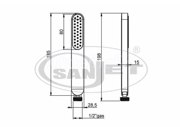 Sanjet ručná sprcha 18,5x3 cm, ABS plast