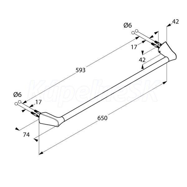 >>  Kúpeľňové doplnky  >>  Držiaky na osušku  >>  Kludi 5398005 AMBA držiak osušky,650 mm,s upevňovacím materiálom, chróm 5398005