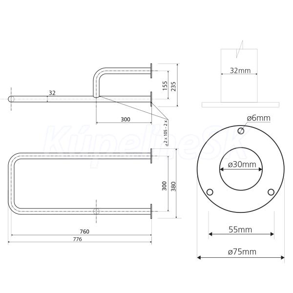 Pomocné prostriedky a bezpečnostné madlá sú zhotovené z nerez trubiek d = 32 mm, materiál: 1.4301.