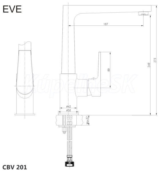 >>  Batérie vodovodné  >>  Drezové-Kuchynské batérie  >>  Mereo Drezová stojanková batéria, Eve, s plochým ramienkom nad pákou, výška273 mm, chróm C