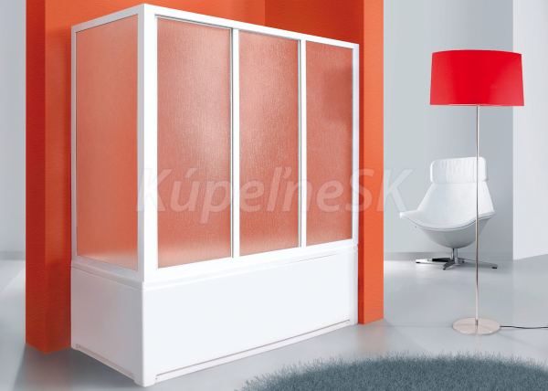 Panel nad vaňu do kombinácie Panel nad vaňu do kombinácie ROYAL VF1 so zasúvacími dverami nad vaňu Royal V2, V3 a V4 . Kvalitné hrubé hliníkové profily bielej farby, špeciálne tepelne upravované a striekané. Plastová výplň o hrúbke 2,2 mm vo vzore stekajúcej vody alebo 4 mm kalené sklo cincilla. Výška 140 cm. Vyrovnávací bočný profil až s 2,5 cm roztiahnutím. Jednoduchá montáž a nenáročná údržba. UPOZORNENIE! Pri výbere sprchového kúta je veľmi dôležitý inštalačný rozmer tzv. ROZTIAHNUTIE PROFILOV , ktorý nájdete v tabuľke. Roztiahnutie určuje minimálny a maximálny rozmer sprchového kúta.