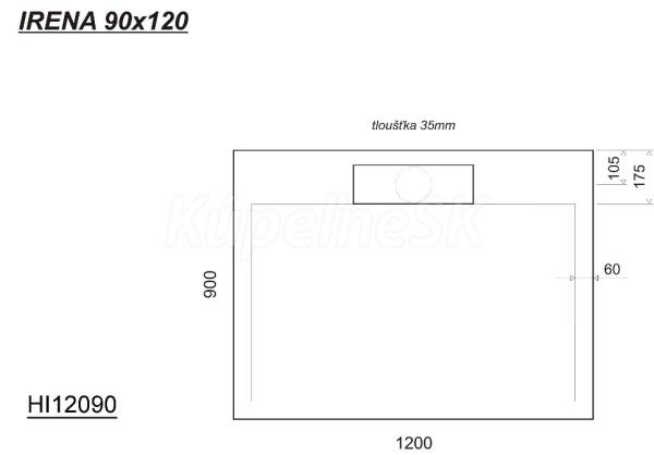 Gelco IRENA sprchová vanička z liateho mramoru, obdĺžnik, 120x90x3,5cm HI12090