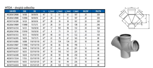 HT 110 dvojitá odbočka HTDA 110/110/110/87°, vr. tesnenia
