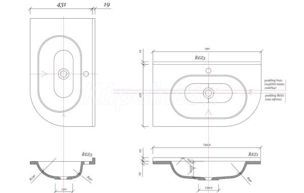Sapho PULSE liaty mramor umývadlo 75x4,4x45cm, ľavé, biele