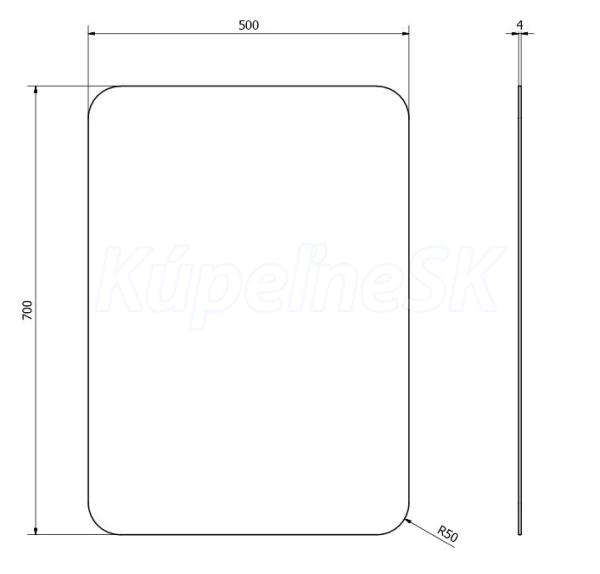 Sapho ISHAPE Zrkadlo 500x700mm, zaoblené rohy, bez uchytenia