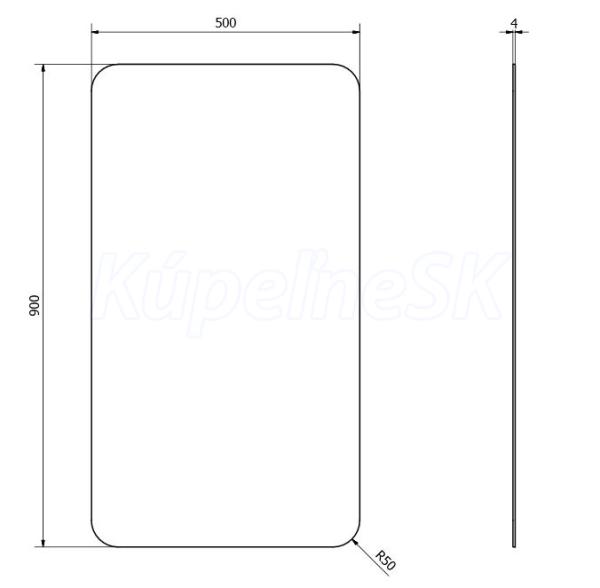 Sapho ISHAPE Zrkadlo 500x900mm, zaoblené rohy, bez uchytenia