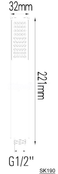 1 funkcie Ručná masážna sprcha materiál ABS plast prevedenie: chróm dĺžka 221 mm trysky s úpravou pre jednoduché čistenie od vodného kameňa - vodný kameň je možné z trysiek ľahko odstrániť ich trením 1 funkcie: dážď
