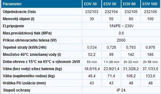 Ohrievač STIEBEL ETRON je alternatívou k ohrievaču TATRAMAT - EOV 100 - pri zachovaní technických parametrov Typ ohrevu: elektrický Poloha inštalácie: horná Objem (l): 100 Typ inštalácie: závesný Regulácia teploty: Áno Príkon ohrievacieho telesa (kW): 2 Hmotnosť (kg): 33.6 Šírka (cm): 51 Výška (cm): 102.5 Hĺbka (cm): 51 Energetická trieda: C Nástenný zásobníkový ohrievač vody 100l, 230V, 2kW (EOV 100) PSH Trend je uzavretý (odolný proti tlaku) a mimoriadne energeticky úsporný elektrický zásobník teplej vody s novým dizajnom na zásobovanie jedného alebo viacerých odberových miest. Umožňuje plynulé nastavenie teploty od 35 °C do 75 °C a automaticky prikúri, keď sa nedosiahne nastavená teplota. Oceľová vnútorná nádrž disponuje špeciálnym smaltovaním CoPro a ochrannou anódou, ktoré zabezpečujú obzvlášť dlhú životnosť. V prevádzke je nástenný zásobník PSH vhodný iba ako tlakový prístroj so zodpovedajúcou bezpečnostnou skupinou. Jednoduchú montáž zaručuje univerzálne zavesenie na stenu.
