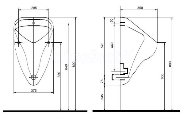 KOLO Nova Pro pisoár Alex, prívod zozadu, odpad dozadu