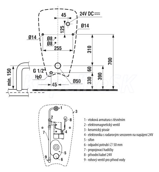 Jika LIVO pisoár s vnútorným prívodom vody, biela