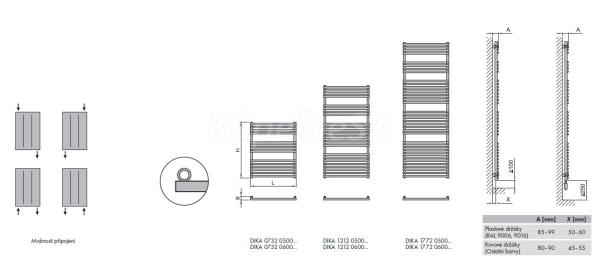 rovný 1772/500 mm (v / š), priemer trubky 22 mm max.prevádzková teplota 110°C samostatne zapojiteľný do elektrickej siete ako samostatné el.vykurovacie teleso v prevedení biela, dodávaný ako komplet s výhrevnou antikoroznou tekutinou a el.výhrevnou tyčou Mini s regulátorom.
