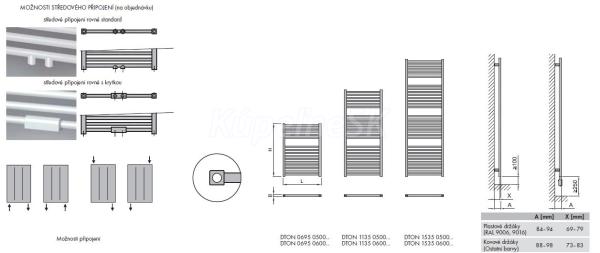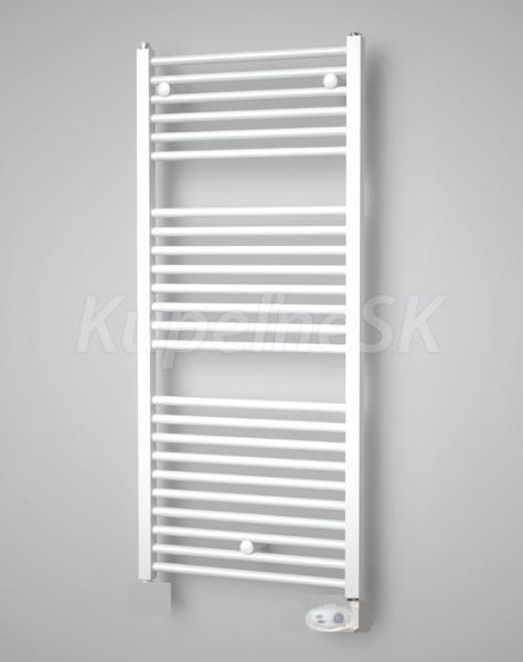 rovný 1135/600 mm (v / š), priemer trubky 20 mm max.prevádzková teplota 110°C samostatne zapojiteľný do elektrickej siete ako samostatné el.vykurovacie teleso v prevedení biela, dodávaný ako komplet s výhrevnou antikoroznou tekutinou a el.výhrevnou tyčou Mini s regulátorom.