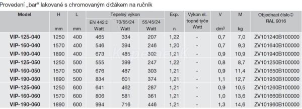 výkony merané podľa EN 442 s označením CE. 2 x spodni stredovej