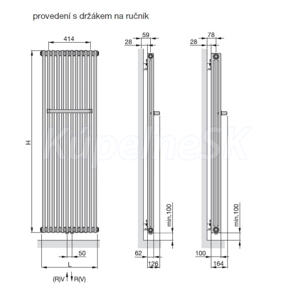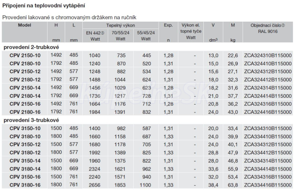 a ohrievanie uterákov. Radiátor lakovaný vrchnou práškovou farbou, štandardne v bielej farbe RAL 9016, na želanie v špeciálnych farbách. Kompletná dodávka s držiakmi a stenovými konzolami vo farbe radiátora. Stredové pripojenie zdola dole pre prívod a spiatočku 2 x 1 " s rozstupom 50 mm a horné pripojenie 1 "pre odvzdušnenie.