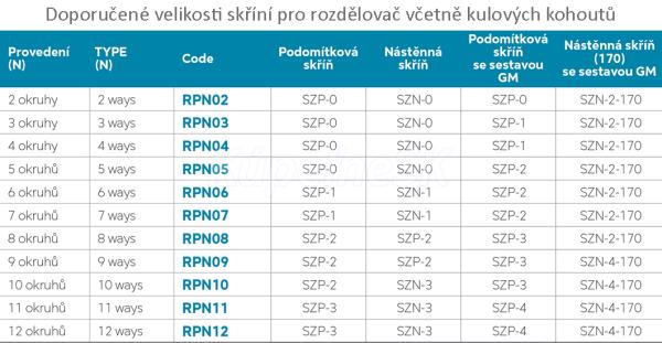kategória distribúcie Novaservis: Podlahové topení | Mosazné rozdělovače. Rozdeľovač so závitom pre priame napojenie vykurovacích telies, pripojenie G1", výstup pre zverné šróbenie G3/4" s eurokónusom.. Rozdeľovač je možné doplniť čerpadlovou zostavou . . ". cerpadlova-zostava-s-w0603/". GM40GPA. /a. a guľovými kohútmi . . ". gulovy-plnoprietokovy-kohut-so-srobenim-motylik-sm-1-1/". KFPS3. /a. .. . Tabuľku vhodných skríň nájdete v obrázku produktu